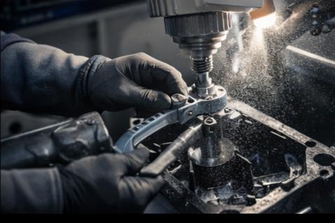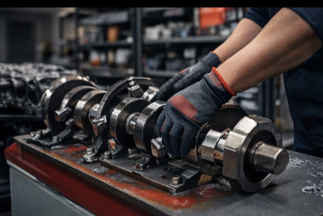 Proceso de mecanizado que corrige desgastes y deformaciones en el cigüeñal, asegurando un funcionamiento suave y preciso.